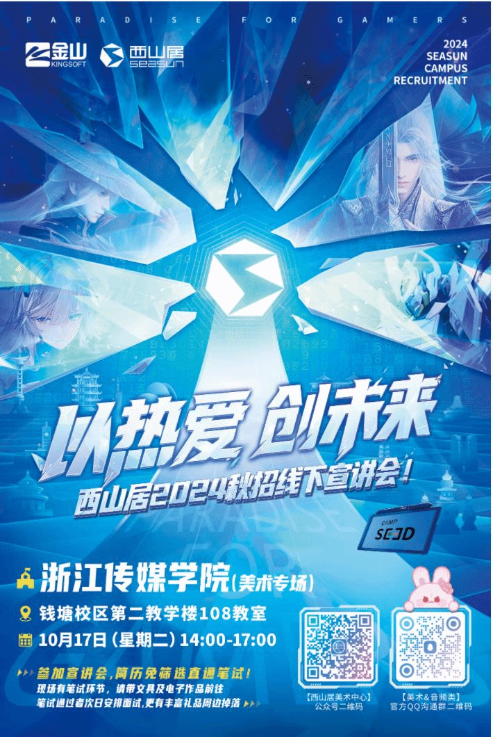 现场有笔试环节,请带文具(2B铅笔、橡皮、黑色签字笔等)和电子作品(优盘或硬盘拷贝即可)