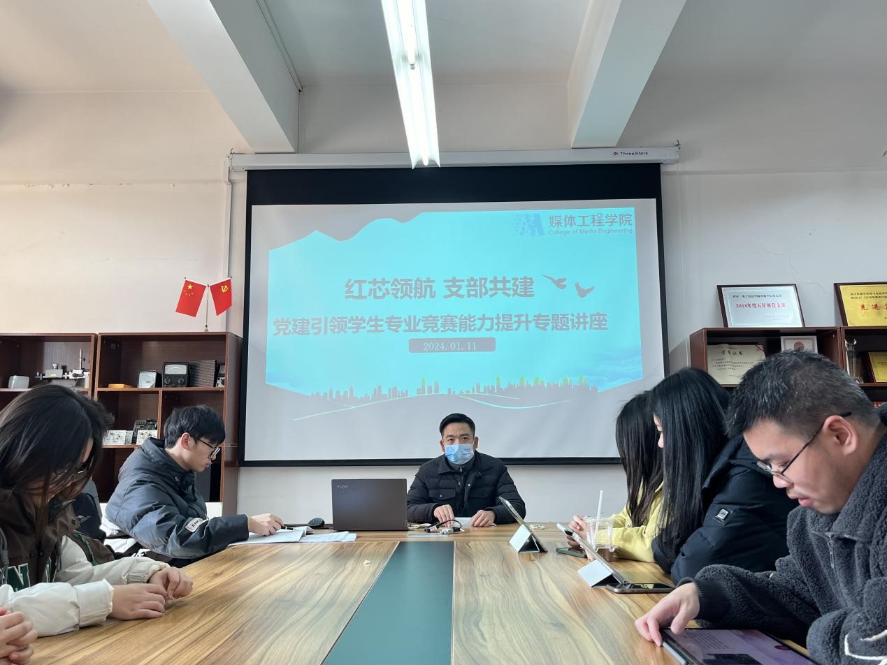 为帮助支部党员尽早了解科研竞赛,高效获取相关信息,解答同学们在科研方向选择、竞赛团队实战等问题上遇到的困惑,媒体工程学院学生第三党支部联合实验中心党支部结合师生支部特色和实际,于2024年1月11日在第一实验楼515党员之家举办“红芯领航 支部共建 党建引领学生专业竞赛能力提升专题讲座”。本次分享会邀请到了在科研训练、学科竞赛上履历丰富的实验中心党支部方步青老师,讲座为支部成员们的科研道路规划、竞赛赛道选择,乃至职业规划与人生发展提供有益参照与宝贵经验。方老师鼓励同学们主动发现、自主求知、深耕创新,在高水平传媒大学建设的征程中努力发挥聪明才智。