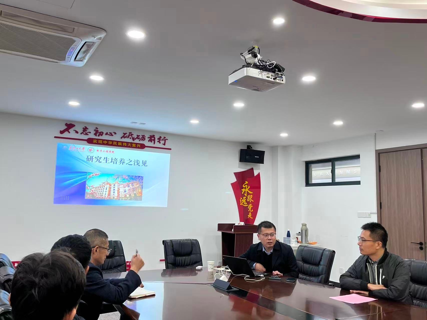 培训会上,作为黑龙江大学电子工程学院分管研究生工作的副院长,刘明亮教授首先介绍电子工程学院的研究生招生方向、科研平台以及“一年研究生工作时序”,分别从学院、导师的角度介绍研究生招生培养工作的重点内容。同时围绕研究生导师职责、立德树人、师生关系构建及等核心维度,结合自身丰富的教学与科研经验,深入剖析研究生培养的关键环节。他指出,硕士研究生学位论文既要求一定的创新性,更要求体现充足的工作量以及论文的规范;强调导师是研究生培养第一责任人,导师与研究生之间应遵守契约精神。导师既要做学术上的引路人,也要当学生成长的知心人,更要将立德树人贯穿培养全过程,培育兼具学术素养与家国情怀的复合型人才。