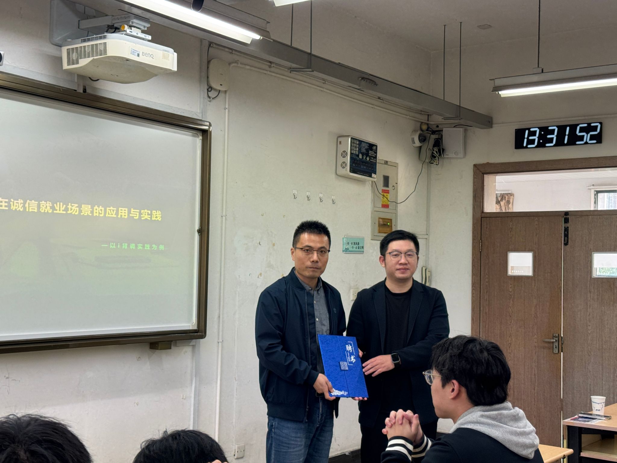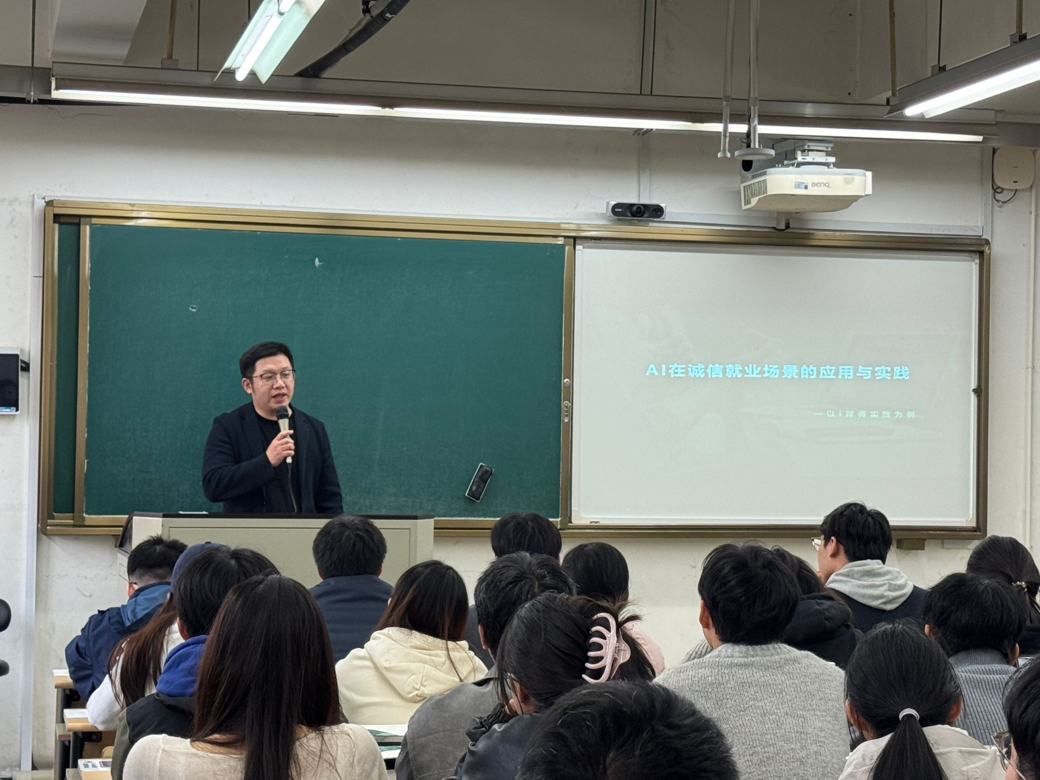 讲座中,李杰以i背调的数字化转型为案例,系统分享了AI大模型、智能体在企业级背景调查、就业诚信核验中的应用逻辑。他结合实际场景解析:AI技术不仅能提升背景调查的效率与精准度,更能通过智能分析构建职场诚信画像,为企业与求职者搭建更可信的就业桥梁。现场师生围绕“AI就业服务的隐私边界”“智能工具如何适配校园招聘场景”等问题展开互动,李杰的实操性解答获得了阵阵掌声。