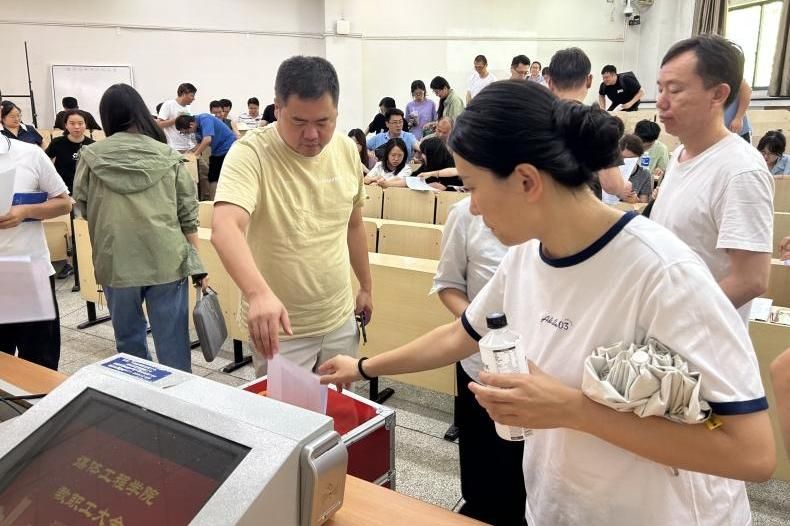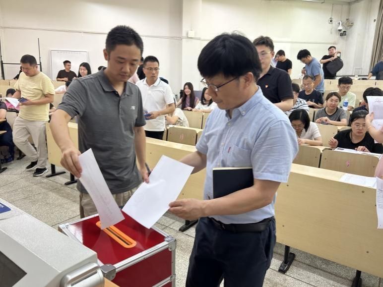 最后,全体教职工对张赟、徐垚、楼翔三位聘任满一年的院领导进行了民主测评。
