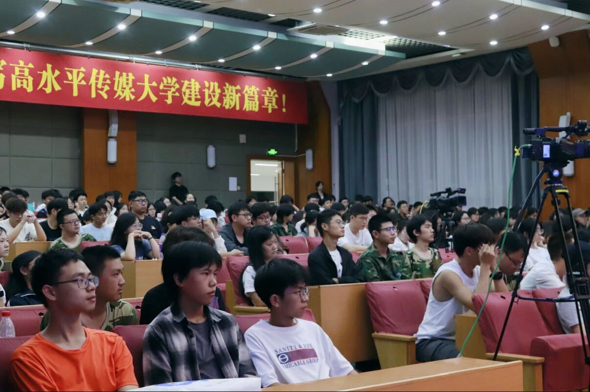 为帮助新生尽快适应大学生活,明确学习目标,树立专业信心,9月21日晚,媒体工程学院2025级新生始业教育暨“开学第一课”在行政楼报告厅举行。本次活动采用“主会场+分会场”直播的形式同步进行,分会场设在现代教育中心309。学院班子成员、辅导员以及全体2025级新生共同参加了本次活动。