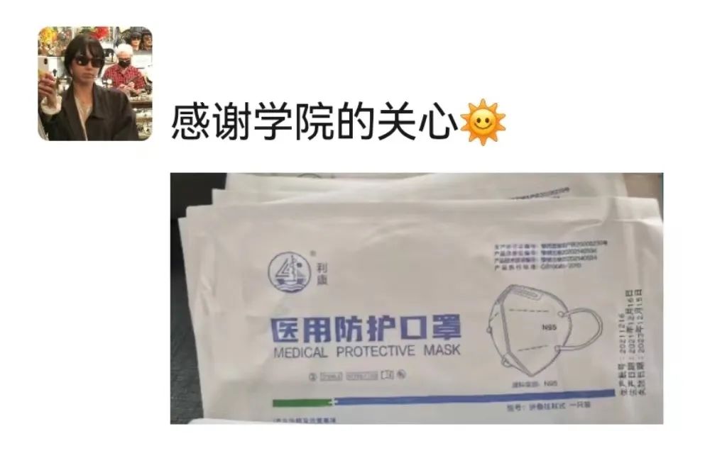 为了保障同学们的路途安全,学院为55个班级的1500名在校的学生都准备了N95口罩等防疫物资,同学们收到口罩后非常感谢学院的关心,表示一定会注意防疫安全,顺顺利利回家后给老师们报平安。