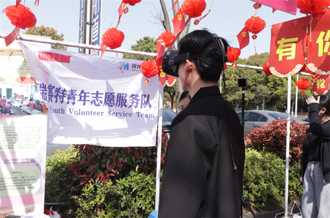 在活动中,媒体工程学院分团委与高教社区签署了志愿合约,陈晨感谢高教社区能为我们大学生志愿者提供这样一个平台来实践。也希望我院的志愿者们能好好利用此次活动来提高自己的服务与实践能力,体验“赠人玫瑰,手有余香”的快乐,用真心去关爱需要帮助的人。并表示这是我们当代大学生的历史使命。媒体工程学院志愿者还带来了学院的特色专业展示:VR设备的体验和电脑维修服务,现场吸引了很多社区居民前来体验。