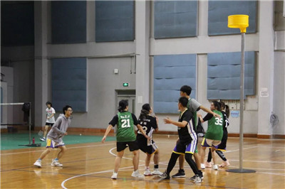 下半场的较量更为激烈,荷球与球框的每一次碰撞,都伴随着观众们热烈的呐喊声和鼓掌声,我院球员气势如虹、锐不可当,对方球员也不甘示弱、奋力追赶,场上比分9:9平。