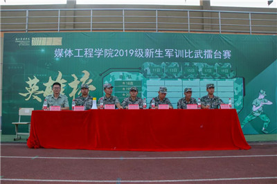 9月11日下午,媒体工程学院2019级新生军训比武首场擂台赛在操场顺利举行!