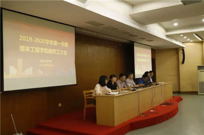 8月29日下午,媒体工程学院新学期第一次全院教职工大会在图书馆二楼报告厅召开。学院党政领导和全体教职工120余人参加会议,会议由常务副院长俞定国主持。